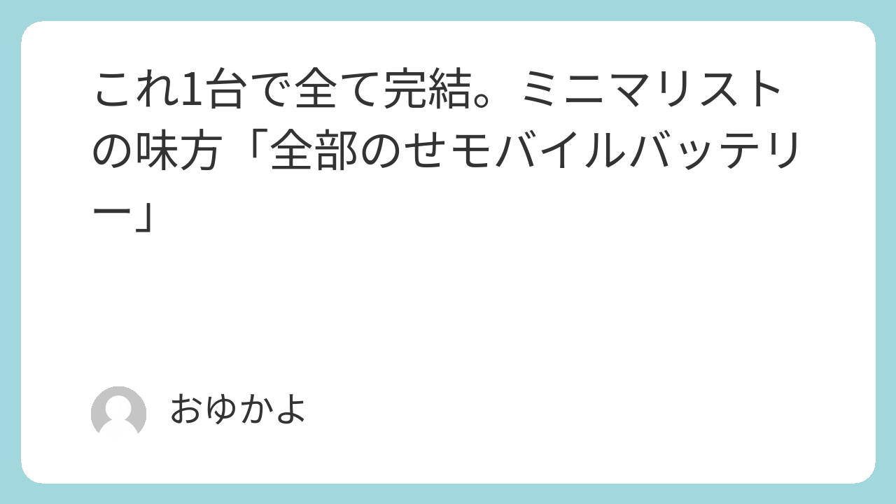 私が1円装置(前回記事参照)の第一弾として紹介したいのは、荷物を究極に減らしてくれるモバイルバッテリーです。^^