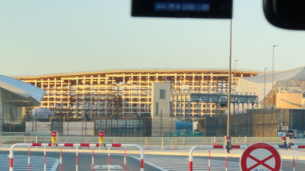 日の出を堪能した後は、車で少し移動して夢洲の方へ向かいました。 外側からではありますが、「大屋根(リング)」や「ヘルスケアパビリオン」、さらには夢洲駅周辺の様子を眺めることができ、万博の思い出めぐりにもなる素敵な年始の過ごし方になりました。^^