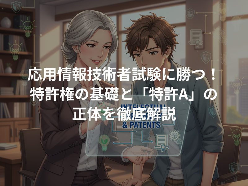 こんにちは、おゆかよです。応用情報技術者試験によく出る「特許権」の仕組みや、他の知的財産権との違いをわかりやすく解説するよ!試験対策のポイントも押さえて、一気に得意分野にしちゃおう!