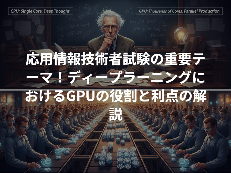 この記事では、応用情報技術者試験でもよく出題される「ディープラーニングとGPUの関係」について、過去問を使いながら楽しく学べるよ!AIの進化を支えるハードウェアの秘密を一緒に覗いてみよう!