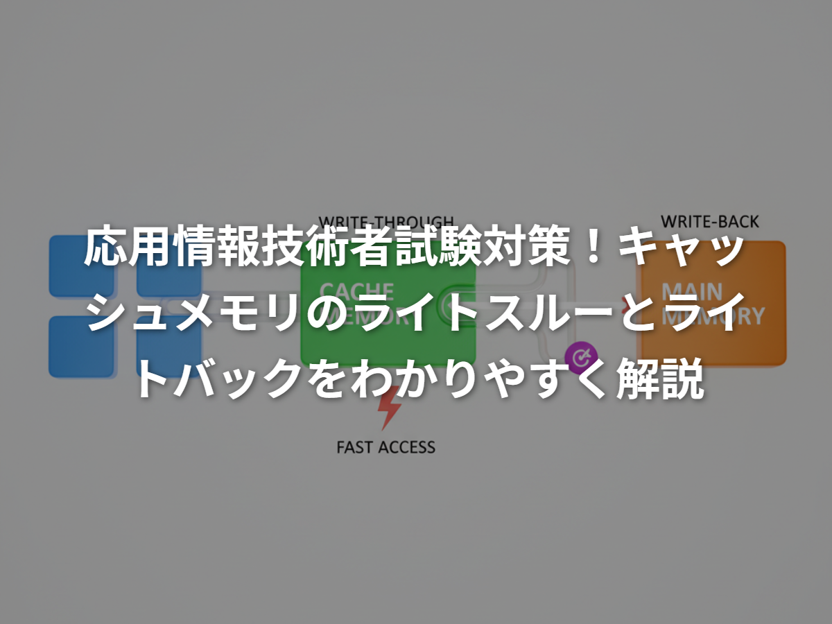 今回のテーマは「キャッシュメモリの書き込み方式」。CPUと主記憶装置(メインメモリ)の間にある高速なキャッシュメモリなんだけど、そこにデータを書き込むときの方法が何種類かあるんだ。特に「ライトスルー」と「ライトバック」という2つの方式は、その違いとそれぞれが持つ特徴をしっかり理解しておくことが合格への近道だよ!